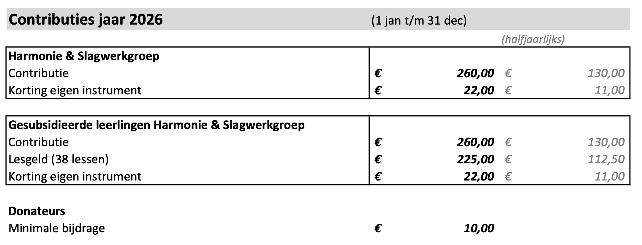 Contributie en lesgelden